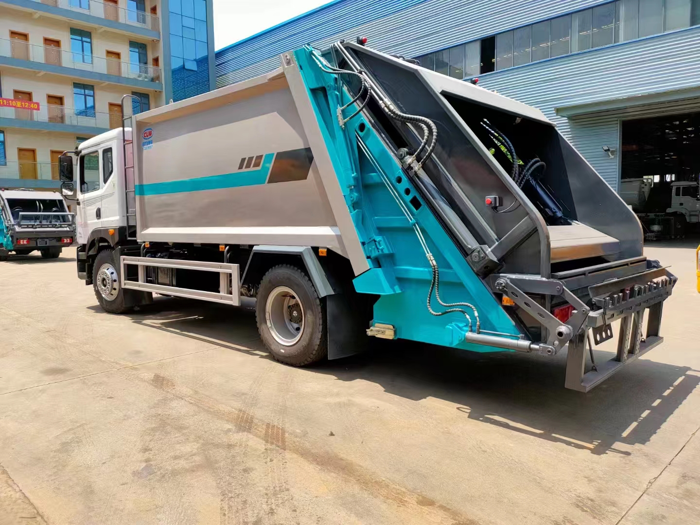 | 上裝配置 | 箱體容積14立方,采用邊四底五高強板制作,填裝器外置滑板油缸結(jié)構(gòu),機器人自動焊,電泳工藝涂裝,威森博樂多路閥,皖液油泵,填裝器外置滑板油缸結(jié)構(gòu),尾部翻轉(zhuǎn)結(jié)構(gòu)可掛120/240L垃圾桶,選裝全密封斗/三角斗。 | ||