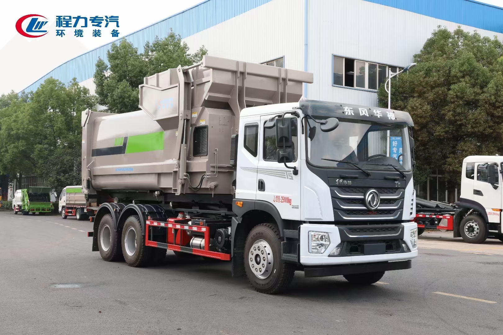 ??????湖北程力汽車:程力專汽東風華神后雙橋勾臂垃圾車+移動壓縮箱產(chǎn)品型號及參數(shù)配置,程力專汽東風華神后雙橋勾臂垃圾車+移動壓縮箱高清圖片,程力汽車系列程力專汽東風華神后雙橋勾臂垃圾車+移動壓縮箱最新報價請撥打客服熱線。車輛主要配置 產(chǎn)品名稱: 程力威牌CLW5253ZXXBHJ車廂可卸式垃圾車 外形尺寸: 828025503170(mm) 排放水平: 國六 貨箱尺寸: (mm) 總質量: 25000(Kg) 接近/離去角: 15/19,15/20,15/21() 額定質量: 14250,14185(Kg) 前懸后...
