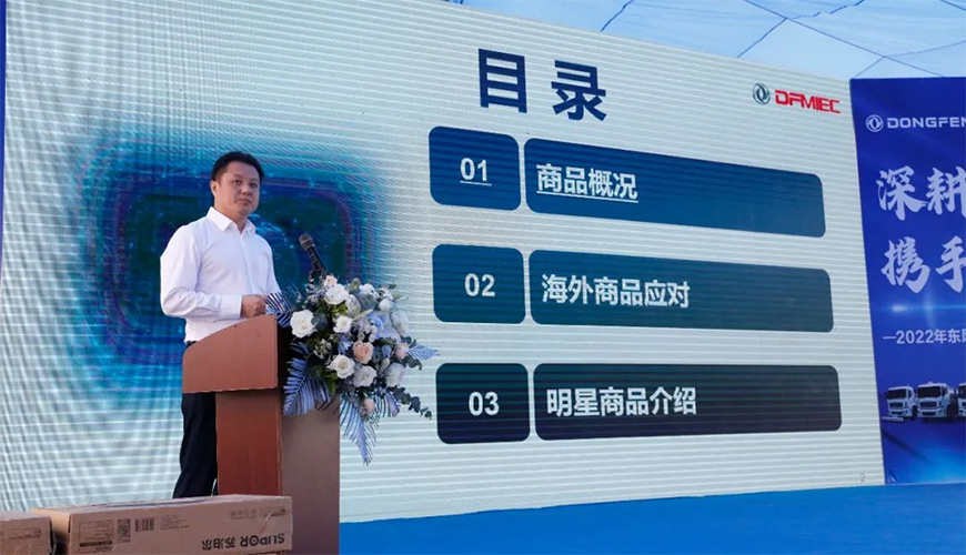 中國(guó)東風(fēng)汽車工業(yè)進(jìn)出口有限公司總經(jīng)理助理?xiàng)顫诨顒?dòng)中,做了重要講話。他強(qiáng)調(diào),首先要感謝程力集團(tuán)一直以來,與東風(fēng)公司全面戰(zhàn)略合作和大力支持,并向參加推薦會(huì)的來賓與銷售經(jīng)理表示誠(chéng)摯的問候。