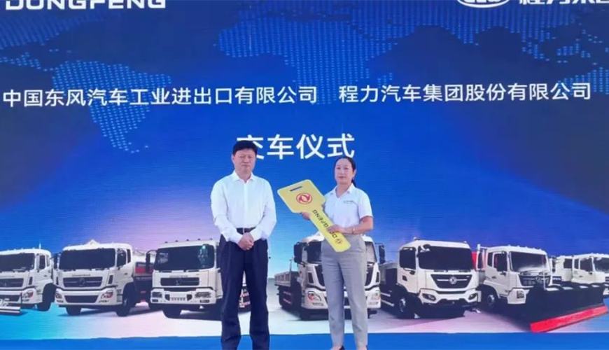 5月27日上午,陽(yáng)光明媚晴空萬(wàn)里,在風(fēng)景如畫花園式的程力新廠底盤大樓廣場(chǎng)上,程力汽車集團(tuán)與中國(guó)東風(fēng)汽車工業(yè)進(jìn)出口有限公司,聯(lián)袂舉行了一場(chǎng)隆重而又別開生面的“深耕專用車,攜手共出海”商用車新產(chǎn)品大型推薦會(huì)。