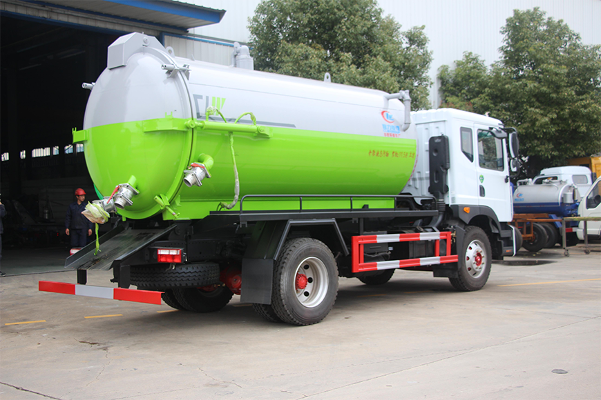 | 上裝配置 | 污罐:Q235武鋼6MM厚碳鋼板,標配采用億豐SK-12水循環(huán)泵。防溢閥,視糞管,配一根8米吸污管,罐體封頭一次壓鑄成型、罐體帶舉升,后蓋為液壓開啟。罐內污物可通過后蓋直接傾倒,具有真空度高、噸位大、效率高、用途更廣泛的特點。 | ||